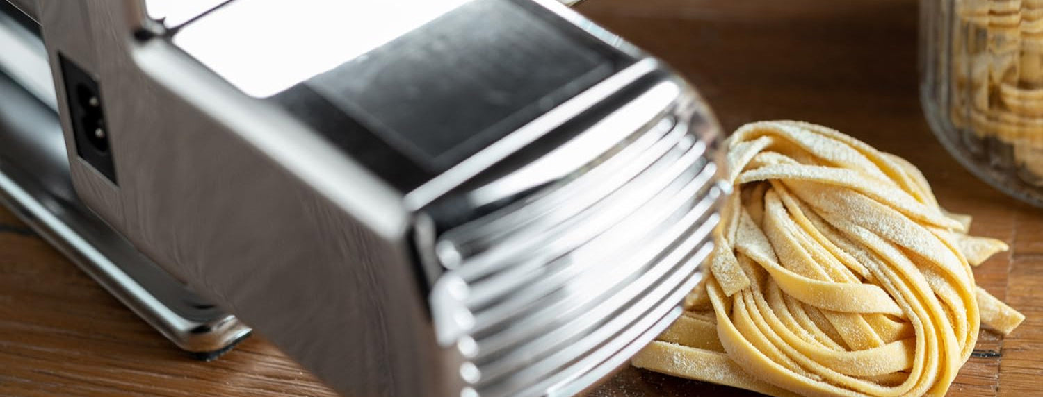 Freunde und Familie sitzen um den Tisch, in der Mitte steht die Schüssel mit dampfender Pasta. KÜCHENPROFI bringt Ihnen ein Stück italienische Lebensart nach Hause. Mit den Nudelmaschinen des Traditionsherstellers Marcato aus Padua. Das Modell ATLAS 150 hat zwei Walzen für die Produktion von Lasagne, Fettuccine und Tagliolini. Bei dem Modell MULTIPAST ist der Name Programm. Es zaubert neben Lasagne, Fettuccine und Tagliolini dank spezieller Aufsätze auch Ravioli, Spaghetti und Reginette, hinzu kommt ein Teigrädchen für Ihre Eigenkreationen. Wer häufiger große Mengen Pasta kocht, kann die Nudelmaschinen mit einem Motor nachrüsten. Oder Sie greifen sofort zu dem Modell ATLASMOTOR für Lasagne, Fettuccine und Tagliolini. Sämtliche Maschinen sind robust verarbeitet und langlebig. Sie stehen fest auf dem Tisch oder der Arbeitsplatte, die Pasta gleitet durch die Walzen. Diese sind aus einer speziellen Aluminium-Legierung hergestellt, die keine Schwermetalle enthält. Ein Wellness-Konzept, das bestens zu einer gesunden mediterranen Lebensweise mit frischen Zutaten passt.